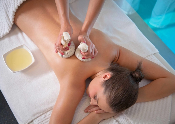 Ritual inebriante de esfoliação e massagem com notas orientais, realizado com "ballotins" de especiarias aquecidos numa manteiga perfumada e nutritiva, segundo uma tradição indiana.